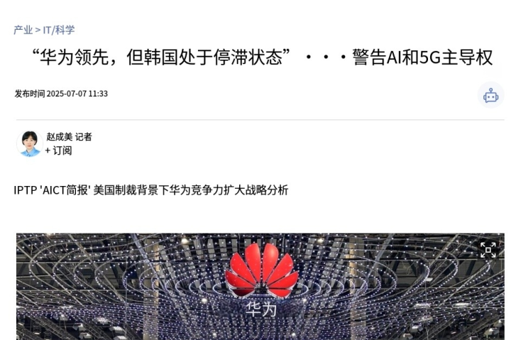 据韩联社7月7日消息,韩国信息通信技术企划评估院(IITP)发布的一份报告指出,华为在5G-A(5G - Advanced)领域已经形成了极为显著的优势,而韩国的三大运营商却因对成本回收的担忧,放缓了5G-A的建设步伐,这一举措使得韩国面临着与华为技术差距进一步拉大的风险。